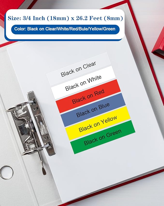 - Package Information: 6-pack p touch label tape TZe 18mm 0.7 laminated colored compatible for brother TZe-241 TZe-141 TZe-441 TZe-541 TZe-641 TZe-741, Size: 18mm (3/4'') x 8m (26.2 feet) per label tape