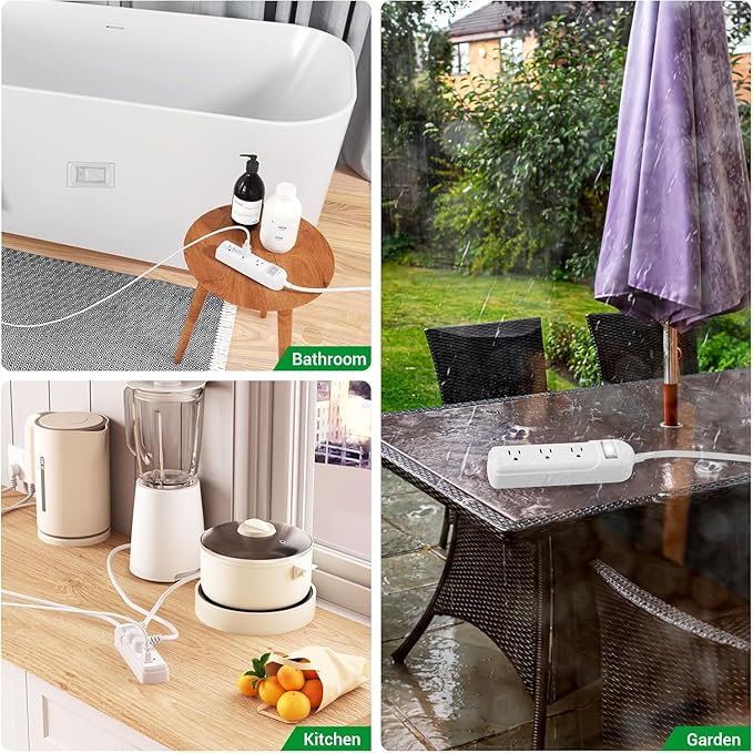 - 【Compact Multi-Function Design】: Featuring 3 wide-spaced AC outlets designed to accommodate large adapters without interference. The 15 foot extension cord provides extended reach for versatile placement in homes, gardens, or RVs.