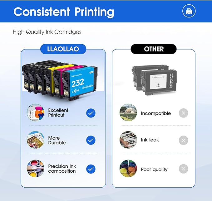 - Printer Compatibility: 232xl ink cartridges for epson printer equipped with the latest smart chip, ensuring compatibility with Epson Expression Home XP-4200 XP-4205 Workforce WF-2930 WF-2950 Printer