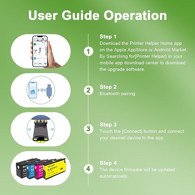 - 【Package Contents】: 1 X 952XL black ink cartridge, 1 X 952XL cyan ink cartridge,1 X 952XL magenta ink cartridge,1 X 952XL yellow ink cartridge,total compatible 952 xl ink cartridges for hp printers 4 Pack + FREE Chip Upgrader – Enjoy 60% Savings, No More Firmware Blocks!