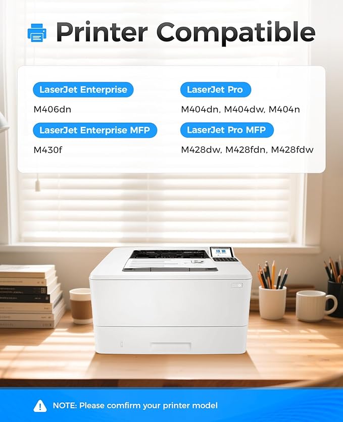 - Compatible Printers: Compatible with HP LaserJet Enterprise M406dn, LaserJet Enterprise MFP M430f, LaserJet Pro M404dn M404dw M404n, LaserJet Pro MFP M428dw M428fdn M428fdw Series Printer.