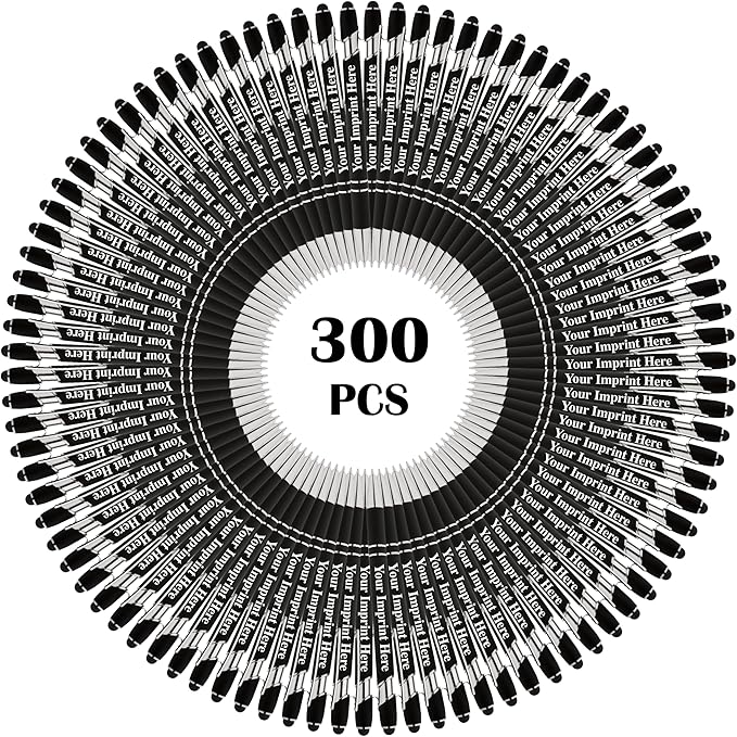 Up to 500 Pcs Custom Pens Bulk | Rainbow of Colors | Soft-Touch Metal Black Ink Personalized with Name or Message (Black, 300 pcs)