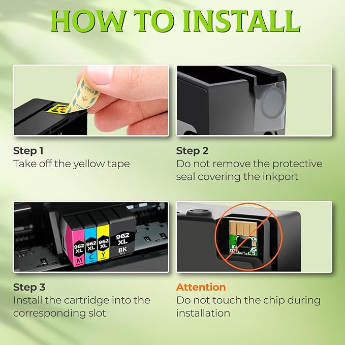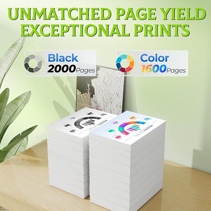- Extra-large capacity, High Page Yield: Up to 2000 Pages per 962xl black , 1600 Pages per ink 962xl color, 5% coverage at A4 paper.