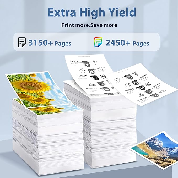 - Extra High-Yield:Get more prints with each replacement for hp 206X.Our 206X toner offers high-yield performance, delivering up to 3,150+ pages per black cartridge and 2,450+ pages per color cartridge (based on 5% coverage of A4 paper), perfect for high-volume printing needs.