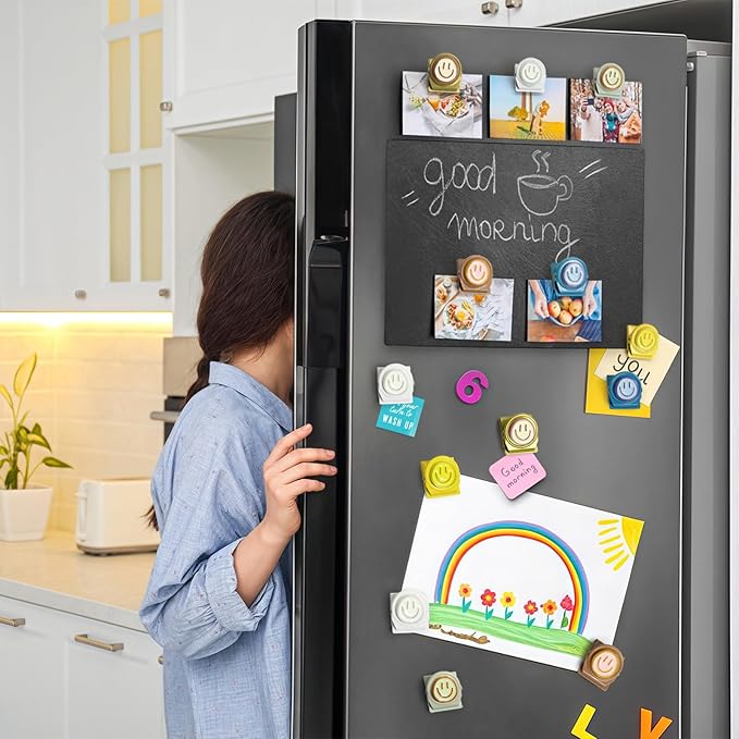 - 【Unique Design】Set of 6 in different colors, every single clip measures 1.18 x 1.37 x 1.10 inchs (L x W x H),made of resin with a happy face pattern on metal clips. Brighten up any space with these vivid and fun magnets clips