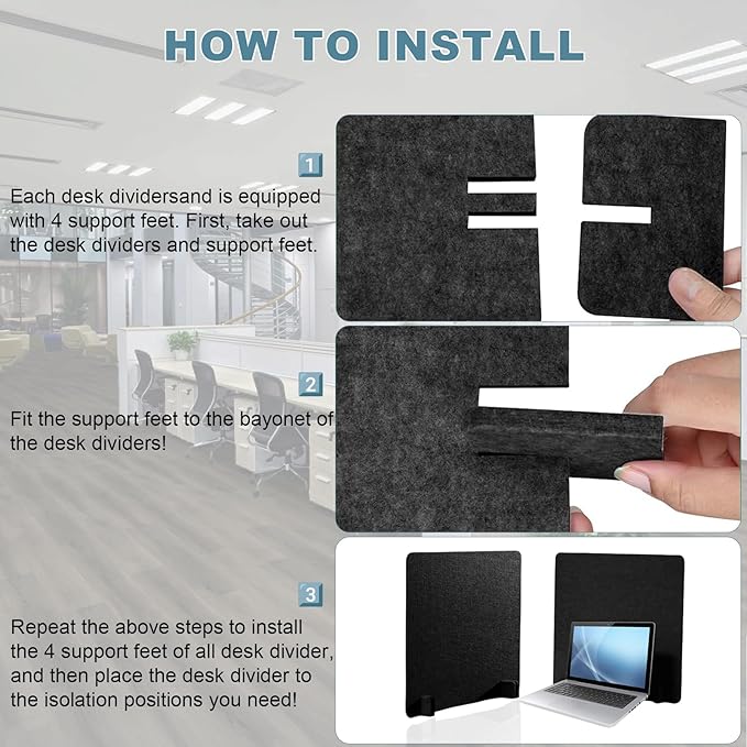 - 【Adequate Quantity for Flexible Grouping】We'll provide you with a 9 pack of dark gray desk dividers, so you can easily create multiple independent workspaces,away from others or distractions, to increase focus and productivity. 9 pack of desk dividers, contains enough quantity, can be flexible according to different desks with the use of dividers.