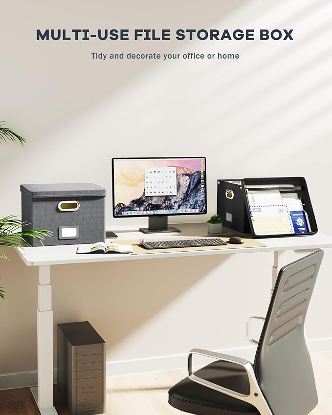 - 【Sturdy & Stackable】Portable storage box is made of well-made linen fabrics and durable material, with good support and bearing capacity, and the box top can withstand 100 lbs. The document boxes can be stacked when in use, or folded for easier storage when not in use.