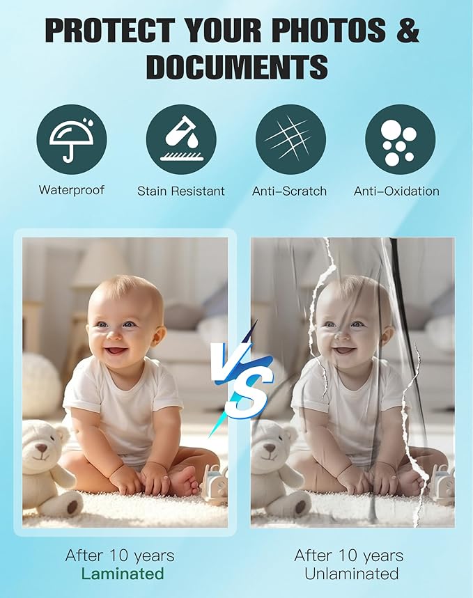 - 🔄【Auto Paper Feed & Intelligent Anti-Jam System】 Laminating has never been easier! With automatic paper feeding and a smart jam-prevention system, this laminator ensures a smooth, reliable experience that’s easy enough for kids, seniors, and first-time users to operate confidently