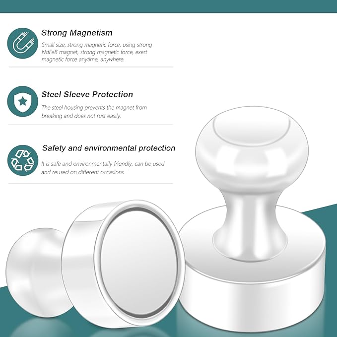 - 【Strong Magnetism】 Powerful neodymium magnets can hold up to 24 sheets! Industrial-grade heavy duty magnet features make strong fridge magnets easy to grip and attach to the whiteboard. No marks or stains when removed silver metal push pin magnets after used from whiteboards, refrigerators or iron products