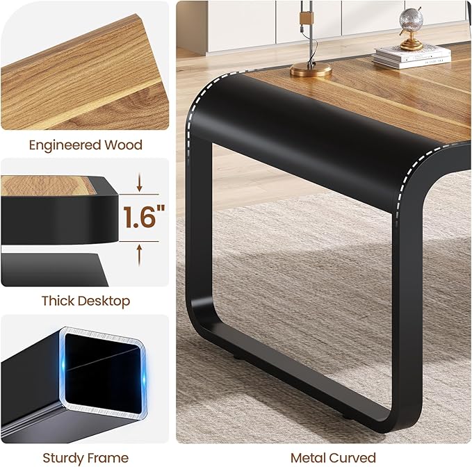 - 【Sturdy and Durable】Unlike ordinary desks, this executive desk features a 1.6-inch thickened desktop and solid metal legs, which is sturdy and durable. The adjustable feet can keep it stable on uneven floors. The desk's top and filing cabinet are made from FSC certified wood.