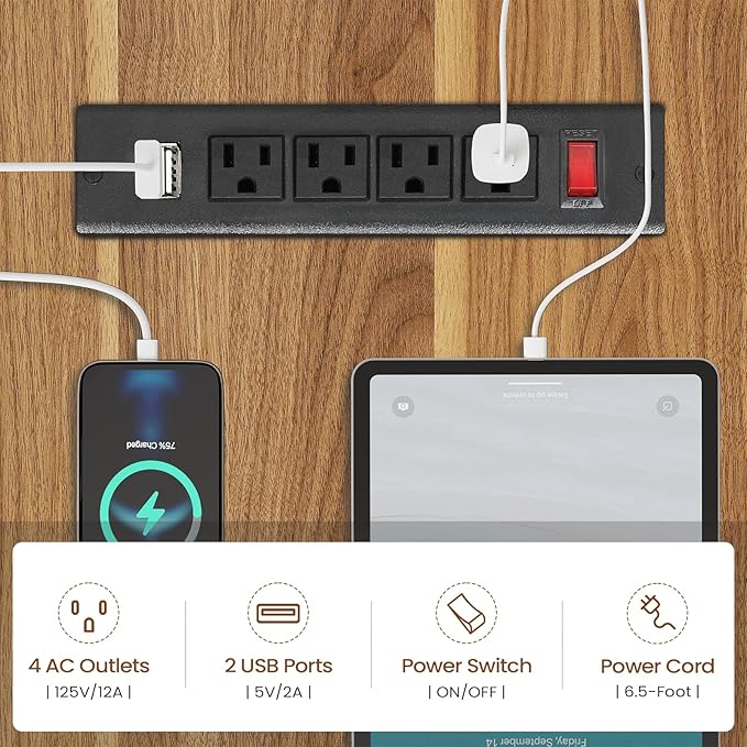 - 【Built-in Charging Station】Our charging station includes 4-Outlet & 2 USB Ports to provide power for up to 6 devices simultaneously. Also includes an on-off switch, thanks to the on-off switch, one-button power off to ensure safe electricity use, which strengthens security.