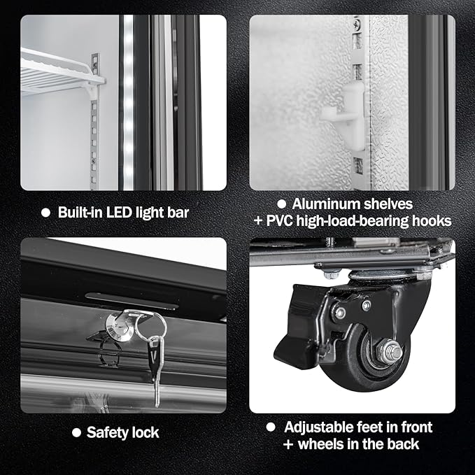- Large-capacity display refrigerator: Offering 6.5 Cu.Ft of storage space with reinforced adjustable shelves for maximum flexibility in organizing your merchandiser refrigerator