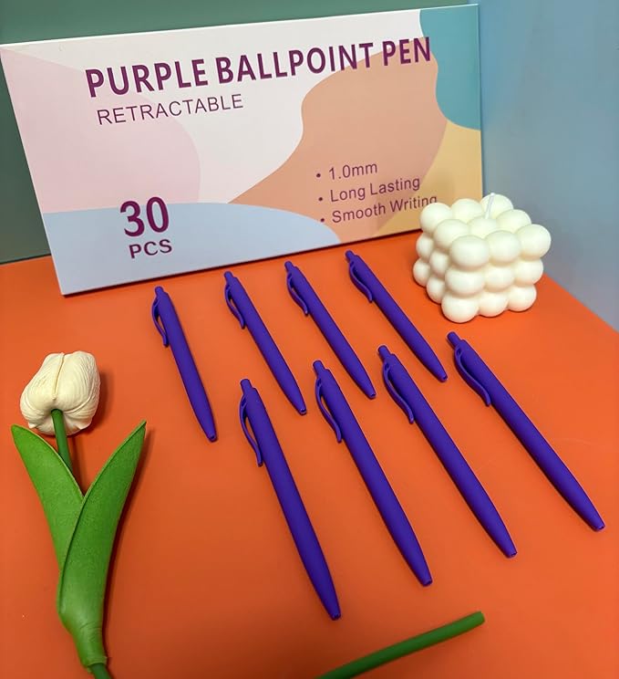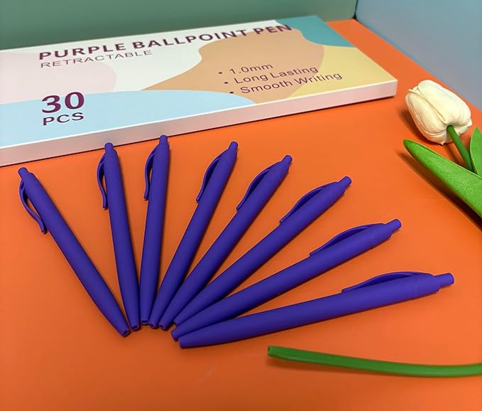 - 【Smooth writing experience】: The Retractable design ensures that these ballpoint pens have Purple ink ready to use at any time. The Purple ink color produces clear text, making it easy to read. The pen tip slides effortlessly on paper, providing a smooth and enjoyable writing experience that will make any task more comfortable.