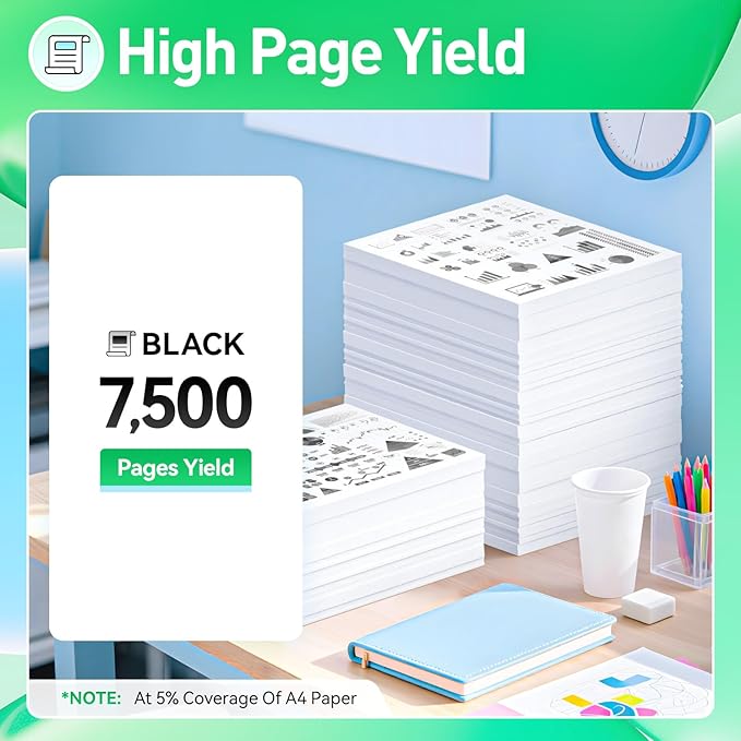 - High-Yield: up to 7,500 pages per 58D1000 Toner Cartridge (Total 7,500 pages, 5% coverage).