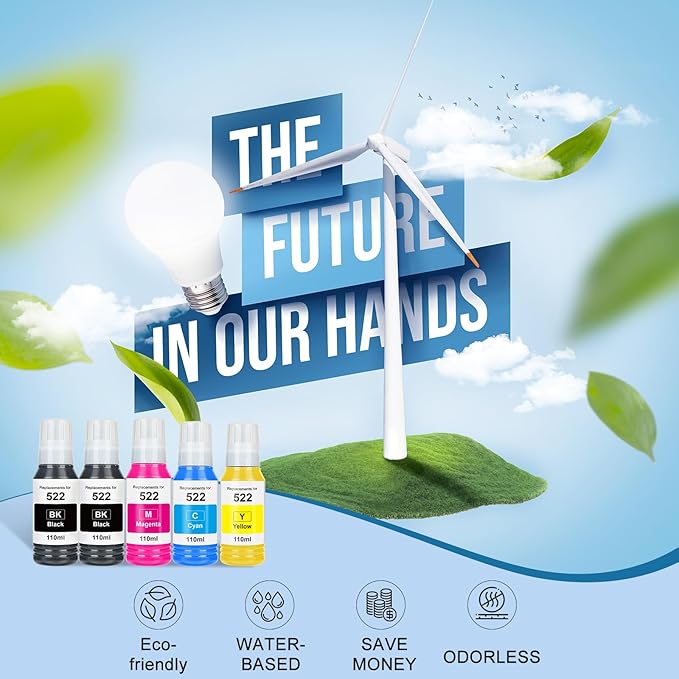 - Quality you can trust: Every high-capacity ecotank ink 522 passes strict quality tests. No ink leakage during transportation. 24-month warranty included—defective 522 ink gets free replacement.