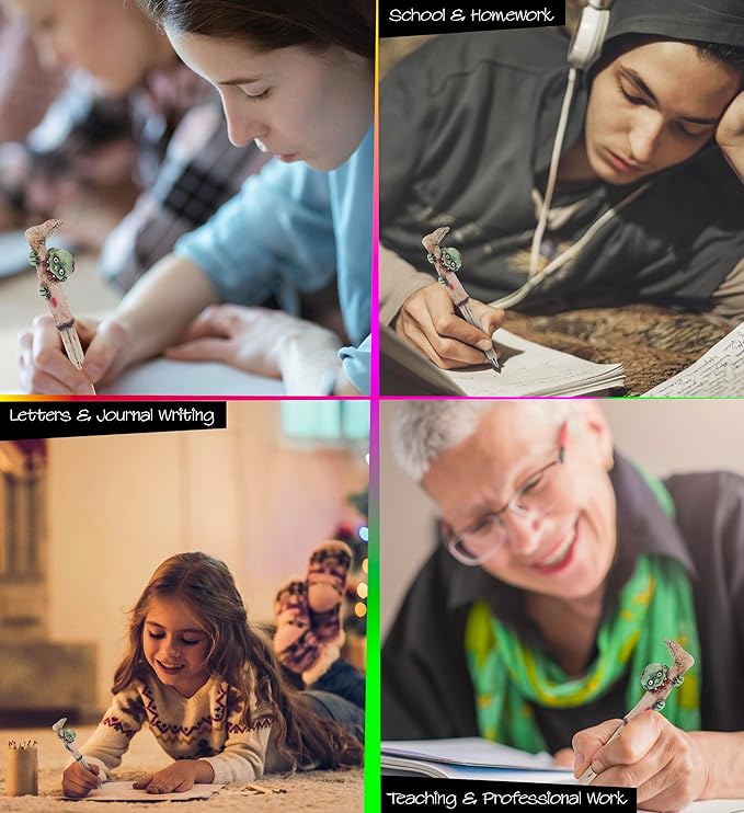 - THE ZOMBIE WRITING PEN COMES WITH UNIQUE DESIGN YOU WILL LOVE - Everybody loves cool stationery, so wait until you feel this spooky novelty zombie writing pen in your hand and the look on your school and office stationery supplies. The realistic looking zombie novelty pen is the perfect pen for school or at work, especially for those who love zombie toys, and collectors of spooky zombie gifts and fun stationary supplies for kids and adults.
