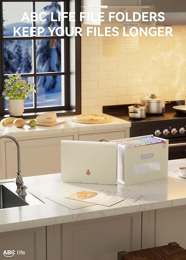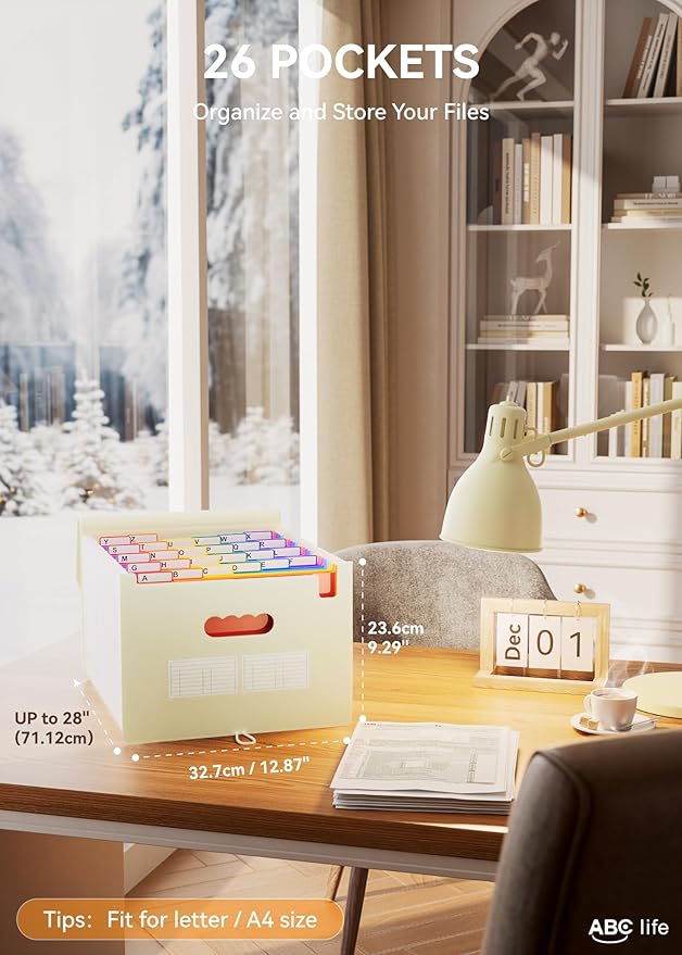 - 【26 Expanding File Folder】ABC life pockets accordian file organizer suitable for filing tax and storing important family documents. Product size is 13 "x 9.4"x 28", top and bottom are both expandable, For letter/A4 size files.