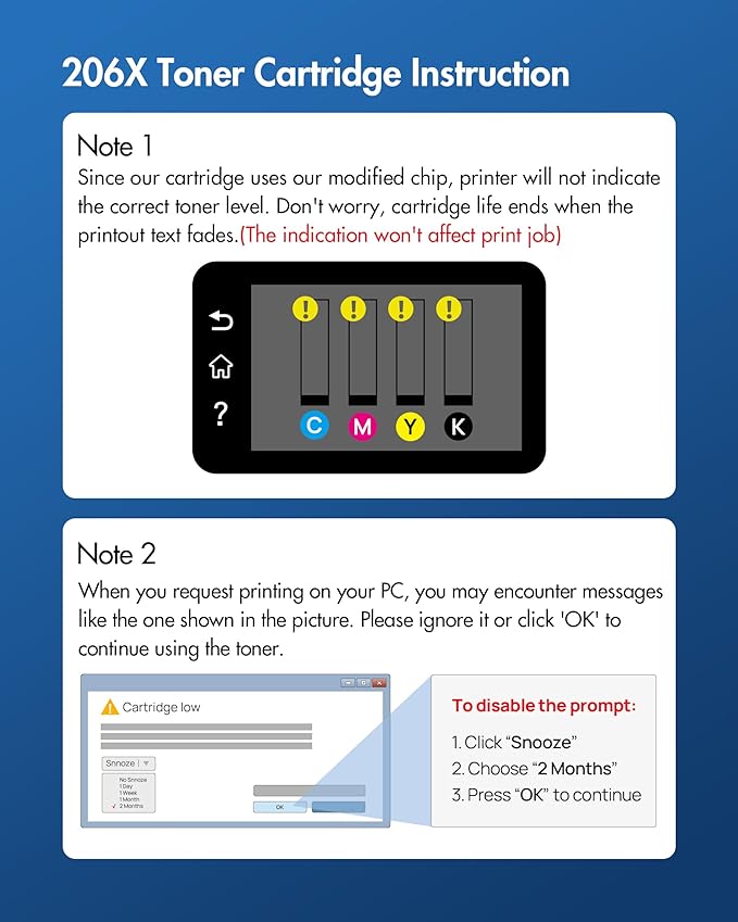 - Excellent Performance: 206X Toner cartridge 4 Pack High Yeild Replacement for hp 206a toner cartridges 4 pack count on high-quality, reliable printing and save time by avoiding common printing problems