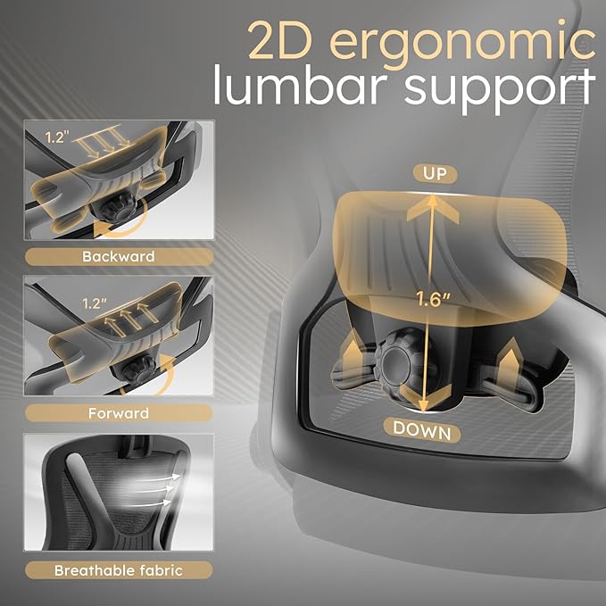 - Strong & Breathable Material: The breathable mesh backrest of this desk chair improves air circulation, keeping you cool and dry all day long. Our mesh executive computer chair comes with adjustable lumbar support to provide optimal back support and relieve lower back pain. Effectively supports your shoulders, back and hips. The adjustable headrest allows you to adjust your sitting position for increased efficiency and comfort during long work hours.