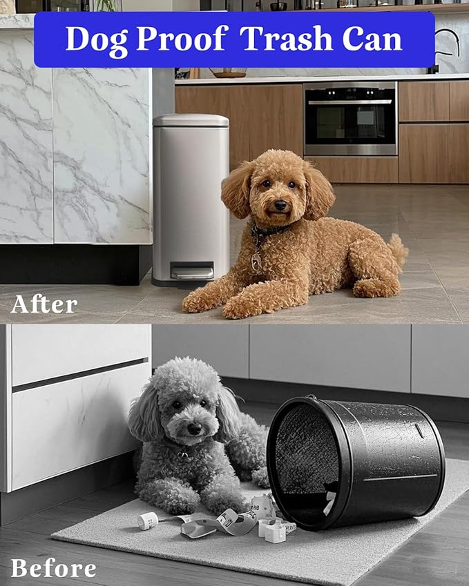 - Pet-Proof & Soft Close Lid:Tall trash can with lid ensuring a smooth and quiet closing every time. This step trash can is perfect for families with small children or pets.Dog proof trash can also prevents pets from tipping over and stays open for convenient use.