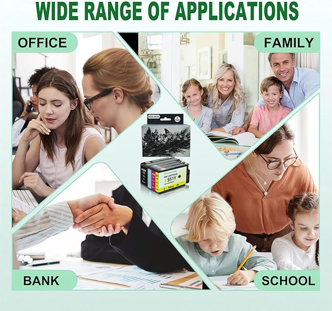 - High Compatibility: New Generation chip show accurate ink level , 950xl 951xl combo pack bring you vivid and clear printing. 950 951 ink cartridges can be instantly identifed by your printers and work perfectly, making daily documents, reports, letters, graphics and photos very clear and bright.