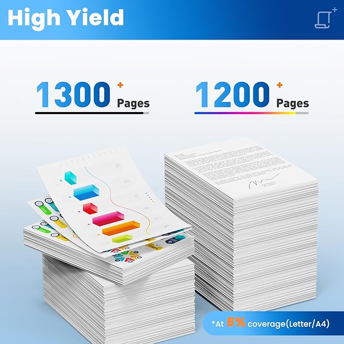 - 218A Toner Cartridge Yield (approx.): 218A toner cartridges 4 pack high yield up to 1,300 pages per 218A black toner cartridge, 1,200 pages per 218A color toner cartridge (Letter/A4, at 5% Coverage).