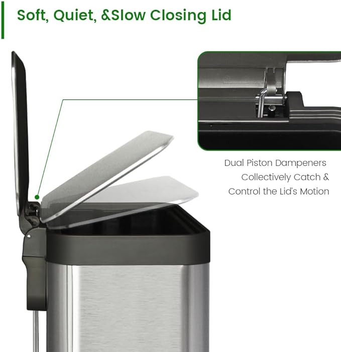 - Soft Close & Stay Open Lid: Equipped with a soft-close mechanism and a stay-open feature, this larger garbage can offers smooth operation and hands-free convenience, perfect for busy kitchens, offices, or commercial spaces.