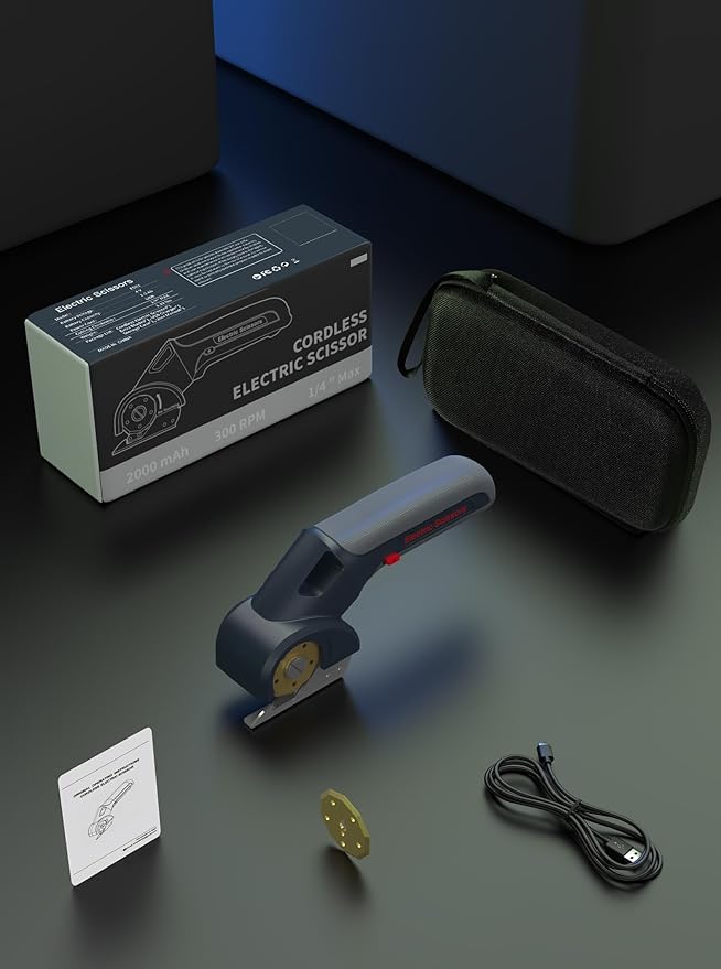 - FULL STARTER KIT INCLUDED: Your kit includes: cordless electric scissors, storge box, spare blade, USB charging cable, and user manualβeverything you need in a complete box cutter set. With a cutting depth of 0.25 inches, this electric cardboard cutter slices through cardboard, leather, carpet, plastic and more