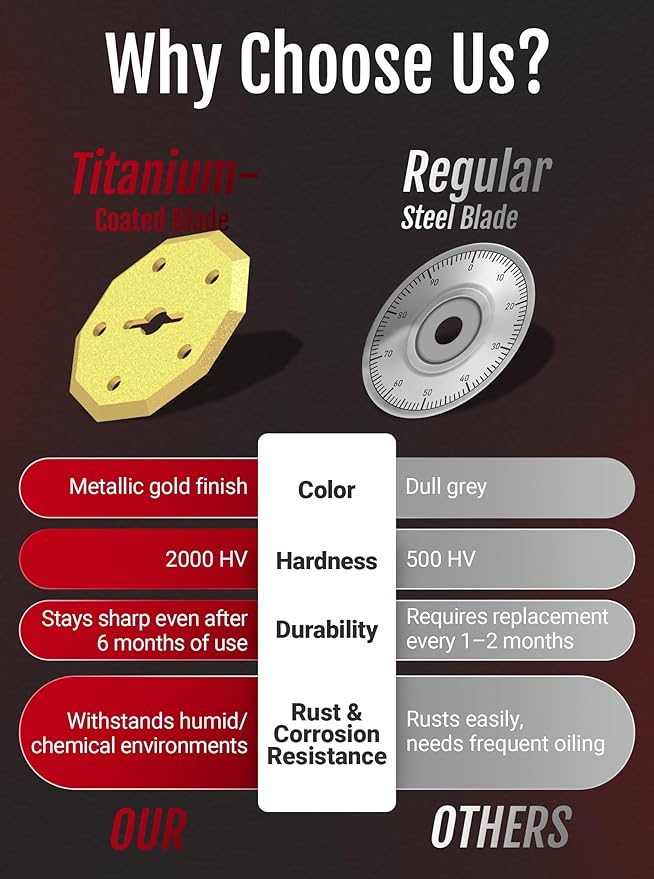 - TITANIUM-COATED BLADE: Tired of box cutter blades that dull after just a few uses? Our electric scissors are equipped with a titanium-coated SKS7 blade, a premium high-carbon alloy steel that delivers razor-sharp precision even after 100,000+ continuous cuts.Unlike ordinary blades that wear down quickly, SKS7 offers: higher hardness, superior wear resistance and extended cutting life β perfect for high-frequency, professional use