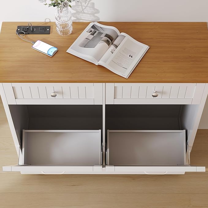 - Multifunctional Storage Hub: More than just a trash cabinet! Use it as a laundry hamper in the utility room, a bedside waste bin, or even a charging station—the built-in power outlet keeps devices powered up. The metal hinges holds the door tilt open for both hands to dispose of waste, while the drawer organizes trash bags and supplies