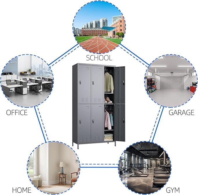 - 【Large Storage Capacity】6 doors metal lockers for employees with Lock 15.75"D x 35.43"W x 72"H. Equipped with 18 hooks,it can meet your needs for storing different sized items and meet most of your daily needs.Each metal locker is equipped with a combination lock, allowing you to use the locker without carrying a key.