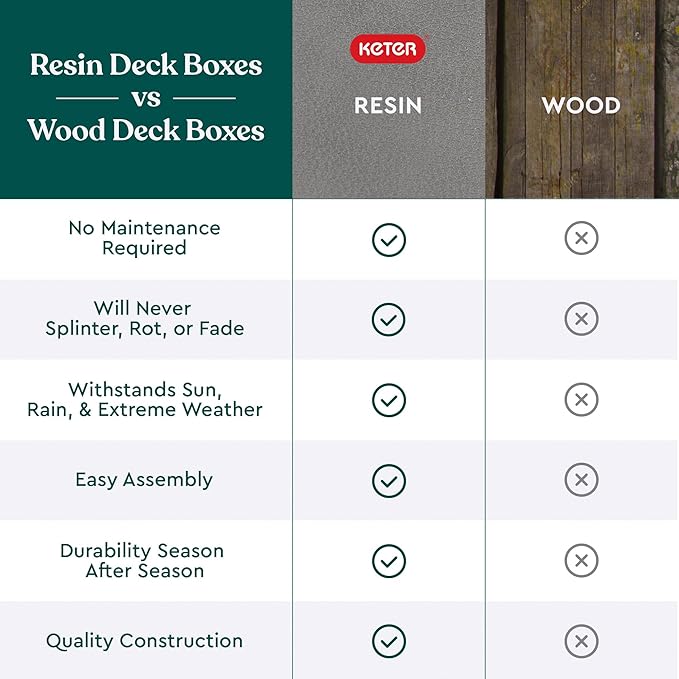 - RESIN CONSTRUCTION: It's made out of all weather-resistant resin with an appealing wood-look texture
