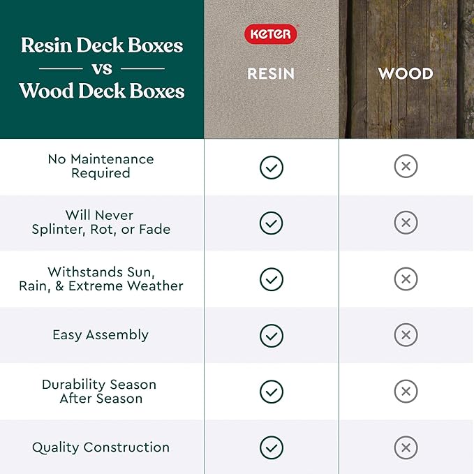 - RESIN CONSTRUCTION: It's made out of all weather-resistant resin with an appealing wood-look texture