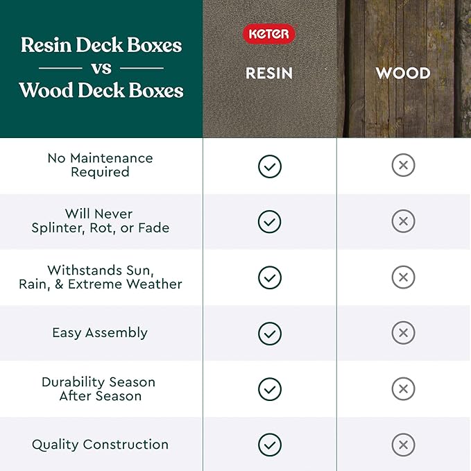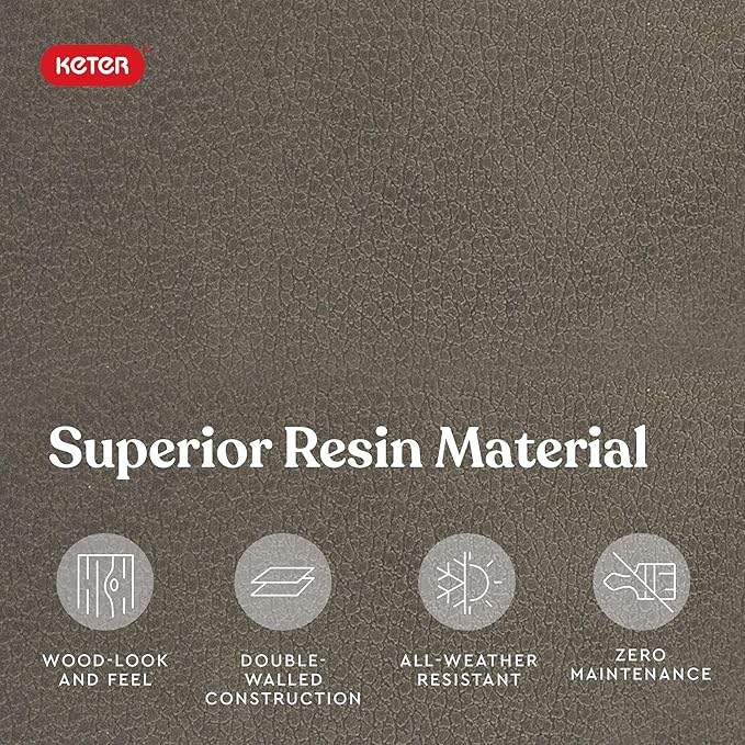 - RESIN CONSTRUCTION: It's made out of all weather-resistant resin with an appealing wood-look texture