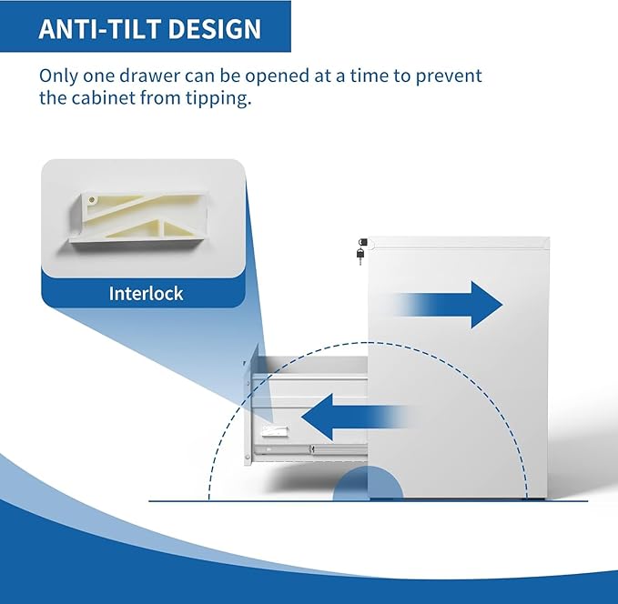 • 【Anti-tilt Design】This vertical legal file cabinet designed with full extension and steel ball-bearing suspension, all drawers of the file cabinets can be opened and closed quietly and easily. The anti-tilt system ensures that only one drawer can be open at a time, preventing the metal file cabinet from tipping over. You can have peace of mind knowing that your important documents and items are safe and secure.