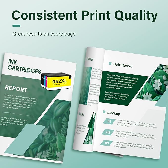 - Package Content: Ink 962XL Black and 962 Color Combo Pack (1 × 962XL Black, 1 × 962XL Cyan,1 × 962XL Magenta,1 × 962XL Yellow Ink Cartridges)