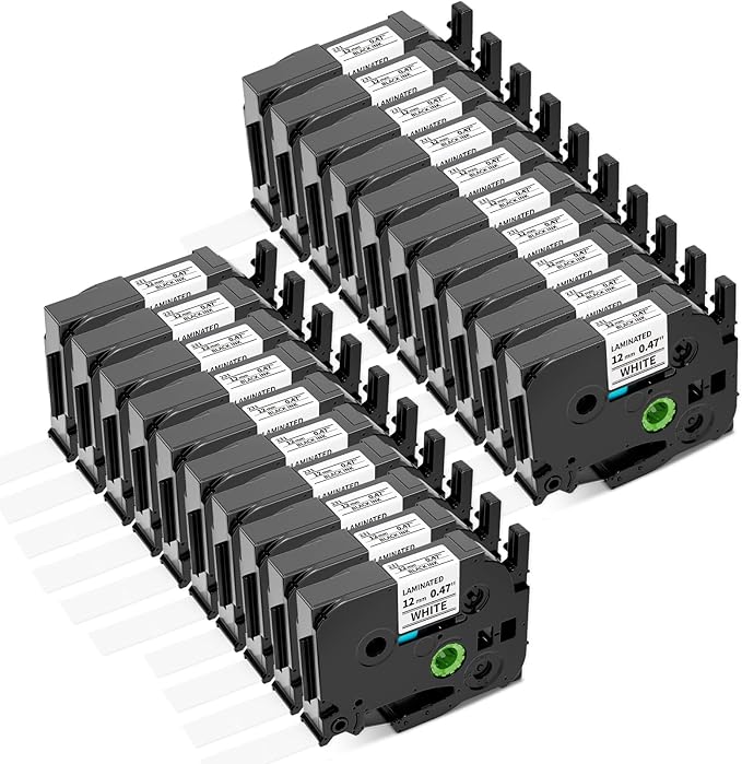 Airmall Tze 12mm 0.47 Laminated White Label Maker Tape Refill Compatible with Brother 12mm .47 Laminated White Tz Tape TZe-231 TZ-231 for PT-D200 D210 D220 H110 D410 P710BT 1750 1180, 20Pack